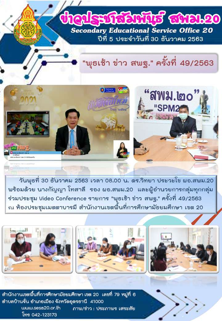 จดหมายข่าว ฉบับวันที่ 30 ธันวาคม 2563